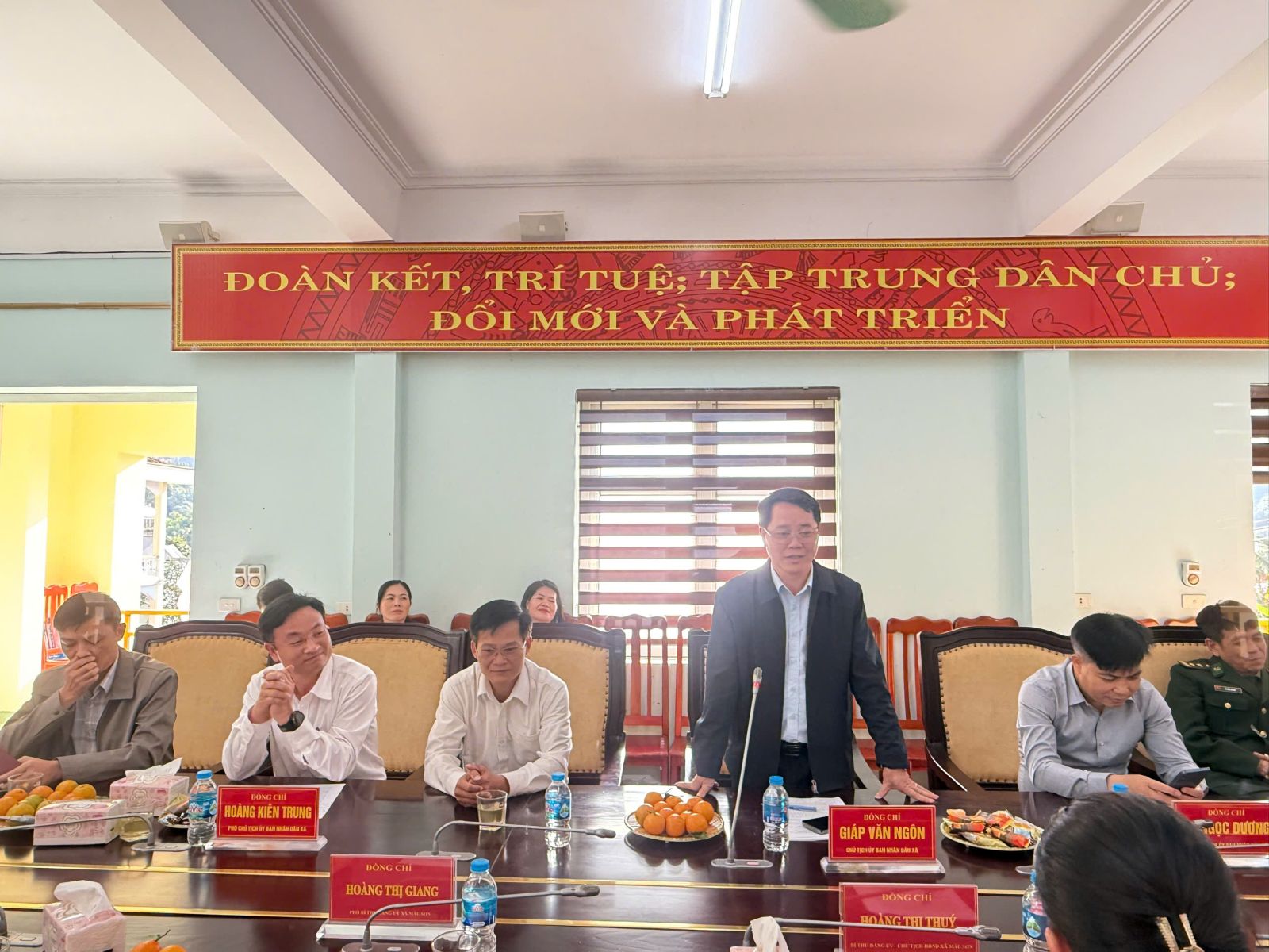 Đón tiếp và làm việc với đoàn, về phía xã Hoành Mô có đồng chí Giáp Văn Ngôn – Chủ tịch UBND xã Hoành Mô, tỉnh Quảng Ninh, cùng các đồng chí trong Thường trực UBND, lãnh đạo các ban ngành chuyên môn của xã.