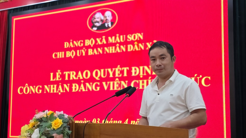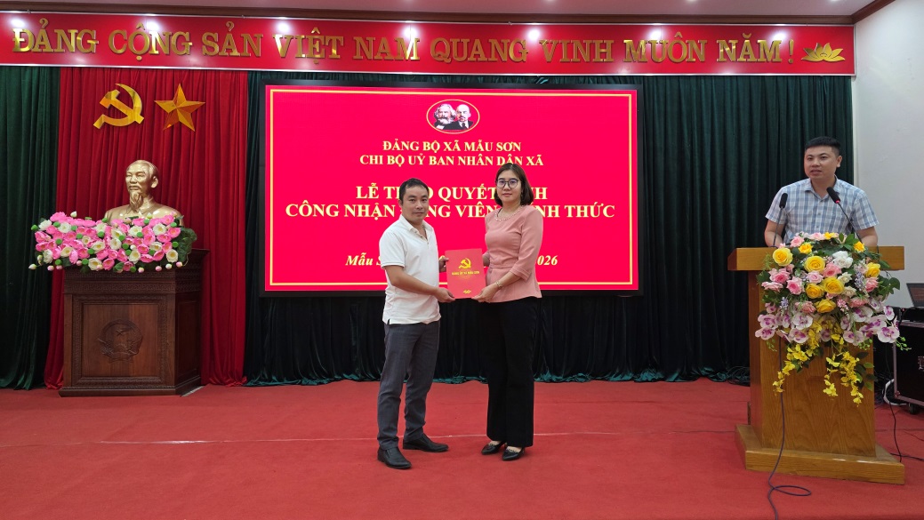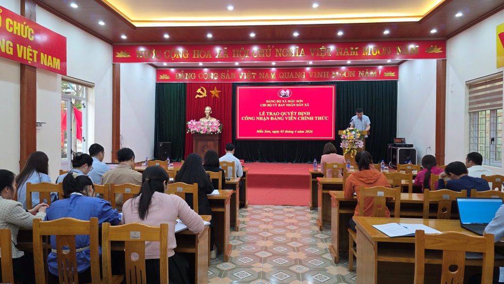 Sáng ngày 03/4/2026, Chi bộ UBND xã Mẫu Sơn đã tổ chức lễ công bố và trao Quyết định chuyển đảng viên dự bị thành đảng viên chính thức.