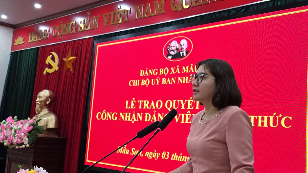 Việc công bố và trao Quyết định công nhận đảng viên chính thức là hoạt động có ý nghĩa quan trọng trong công tác xây dựng Đảng, góp phần bổ sung lực lượng đảng viên trẻ, nâng cao năng lực lãnh đạo và sức chiến đấu của Chi bộ UBND xã Mẫu Sơn./.