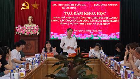 Sáng ngày 11/4/2026, Đoàn khảo sát của Học viện Chính trị quốc gia Hồ Chí Minh phối hợp với Đảng ủy xã Mẫu Sơn tổ chức tọa đàm khoa học với chủ đề: “Đánh giá hiệu quả công việc (KPI) đối với cán bộ trong các cơ quan làm công tác Đảng trên địa bàn tỉnh Lạng Sơn: Thực tiễn và giải pháp”.