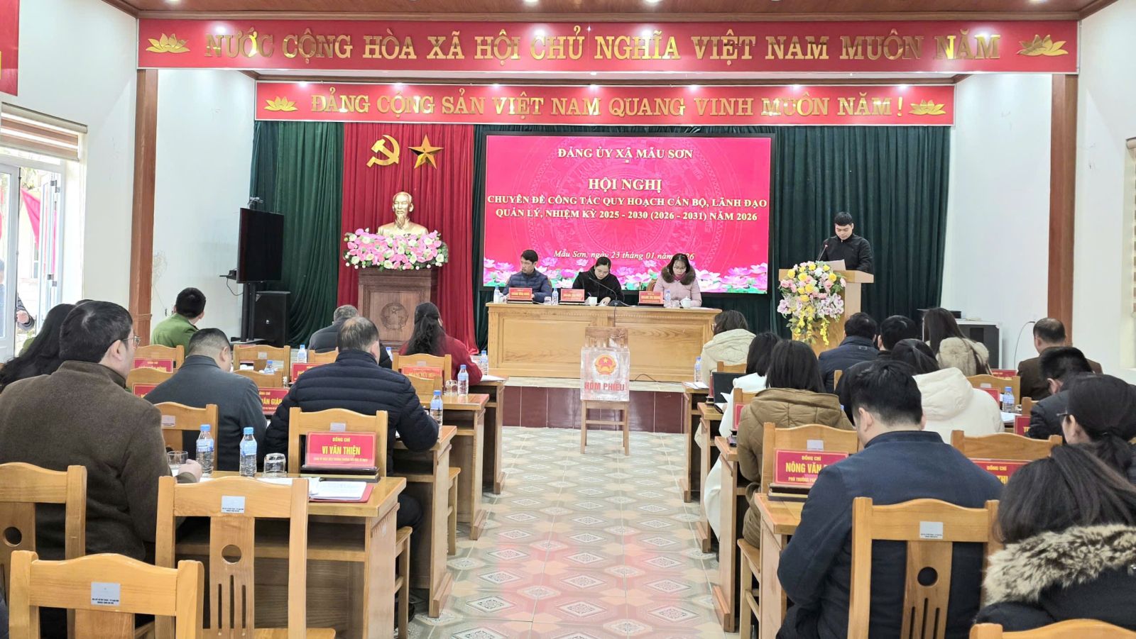 Chiều ngày 23/01/2026, Đảng uỷ xã Mẫu Sơn tổ chức Hội nghị chuyên đề về công tác quy hoạch cán bộ lãnh đạo, quản lý nhiệm kỳ 2025 - 2030 (2026 - 2031) năm 2026.