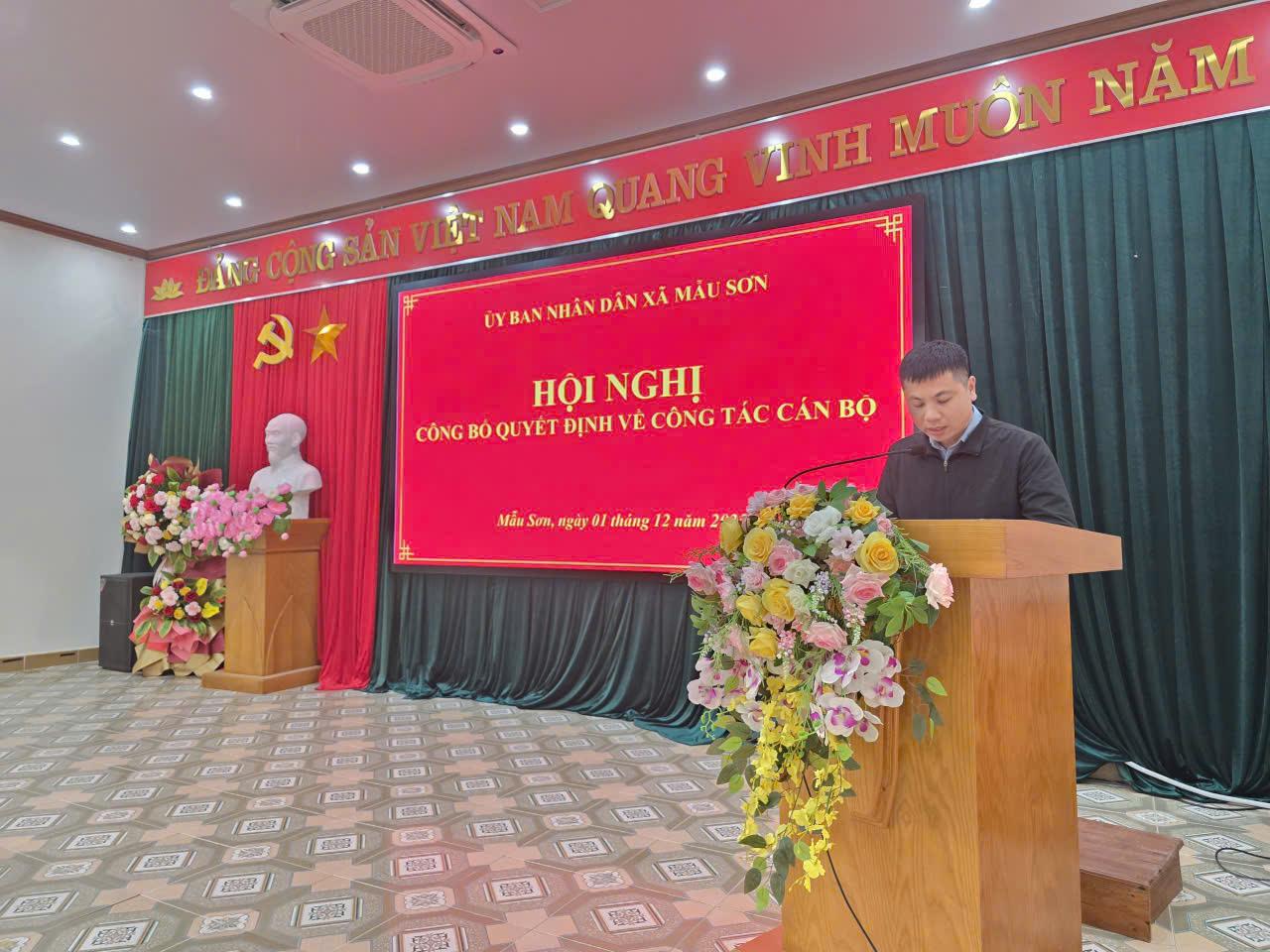 Ngày 02 tháng 12 năm 2025, Ủy ban nhân dân xã Mẫu Sơn tổ chức Hội nghị công bố quyết định về công tác cán bộ.