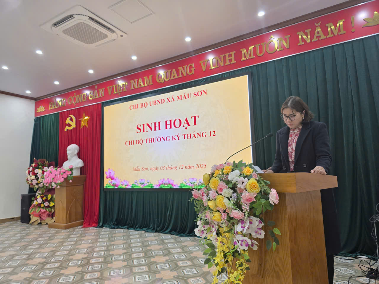 CHI BỘ ỦY BAN NHÂN DÂN XÃ MẪU SƠN TỔ CHỨC SINH HOẠT CHI BỘ THƯỜNG KỲ THÁNG 12 NĂM 2025