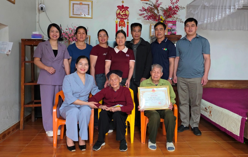 UBND XÃ MẪU SƠN TỔ CHỨC CHÚC THỌ, MỪNG THỌ NGƯỜI CAO TUỔI TRÒN 90 TUỔI