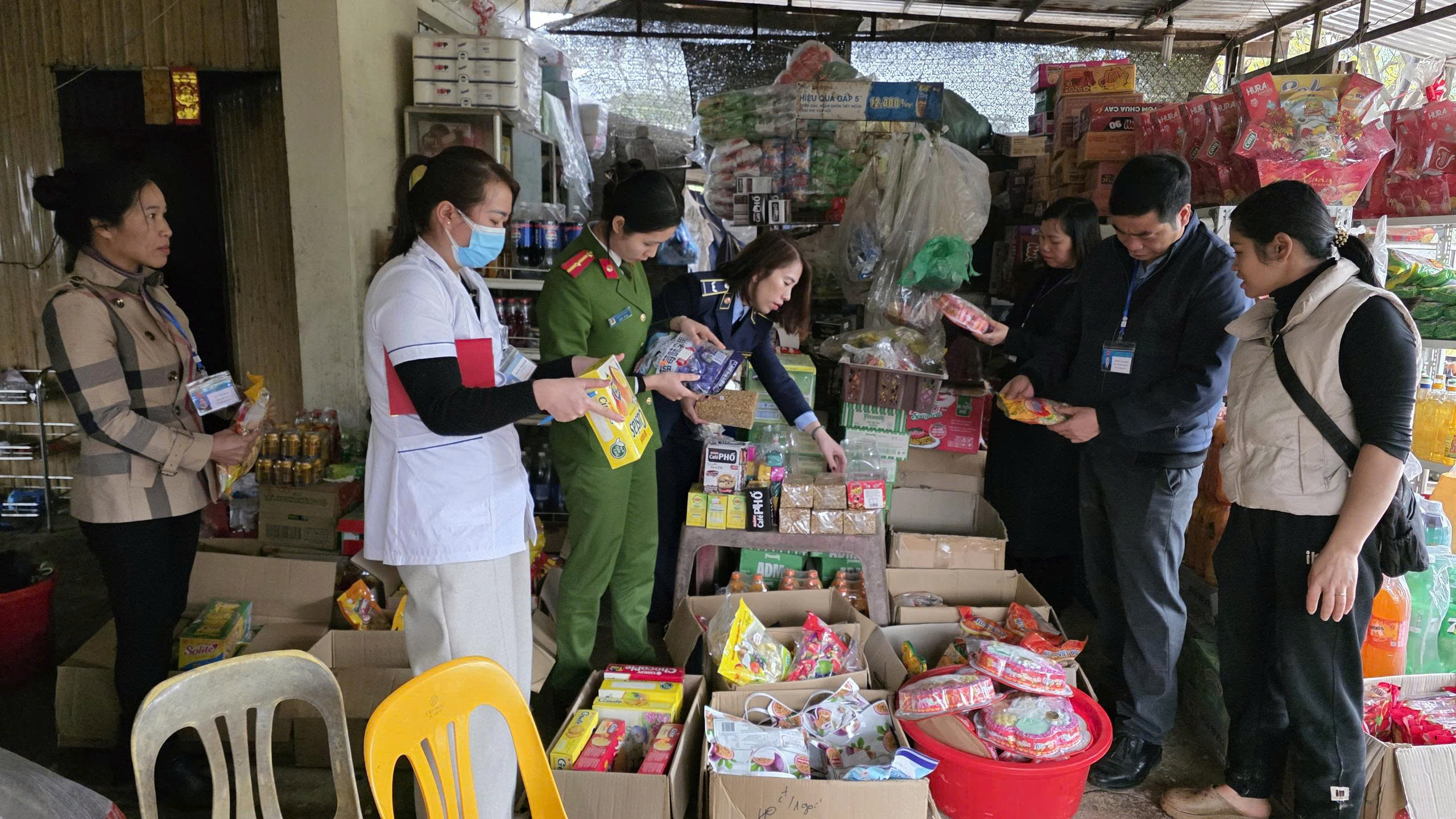 Đoàn đã tổ chức kiểm tra, giám sát tại các cơ sở chế biến, kinh doanh thực phẩm và các điểm buôn bán thực phẩm tại thôn Chi Ma, thôn Bản Khoai. Nội dung kiểm tra tập trung vào các điều kiện bảo đảm an toàn thực phẩm như: nguồn gốc, xuất xứ hàng hóa; hạn sử dụng; điều kiện bảo quản; vệ sinh cơ sở; trang thiết bị, dụng cụ chế biến; việc chấp hành các quy định của pháp luật về an toàn thực phẩm.