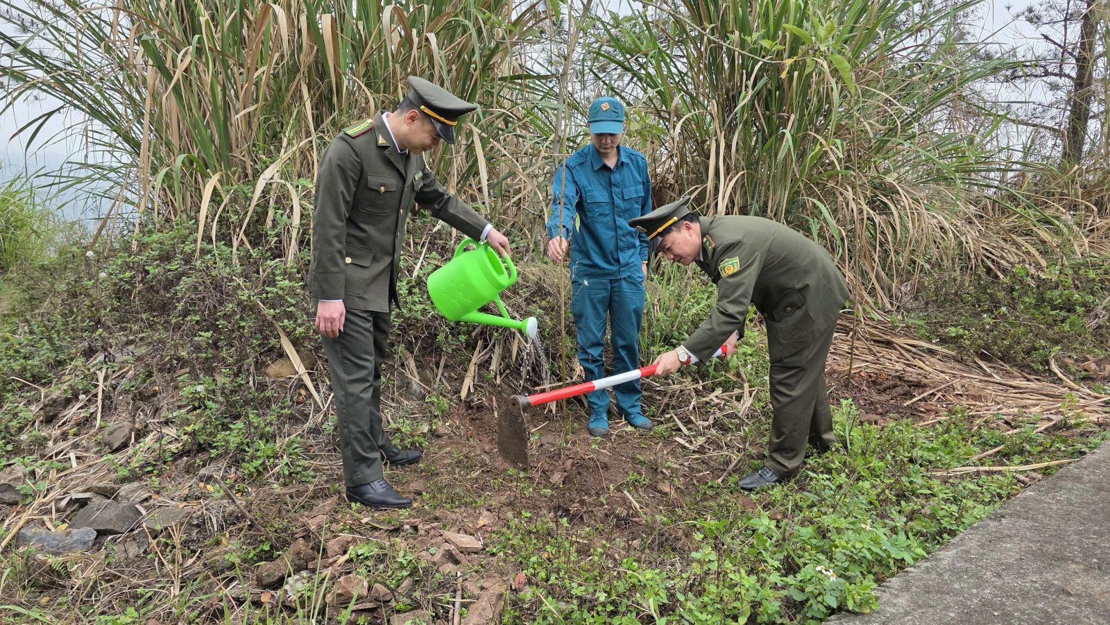 Các đồng chí lãnh đạo UBND xã Mẫu Sơn và Đồn Biên phòng cửa khẩu Chi Ma trồng cây tại Điểm cao Chốt 424 thôn Chi Ma