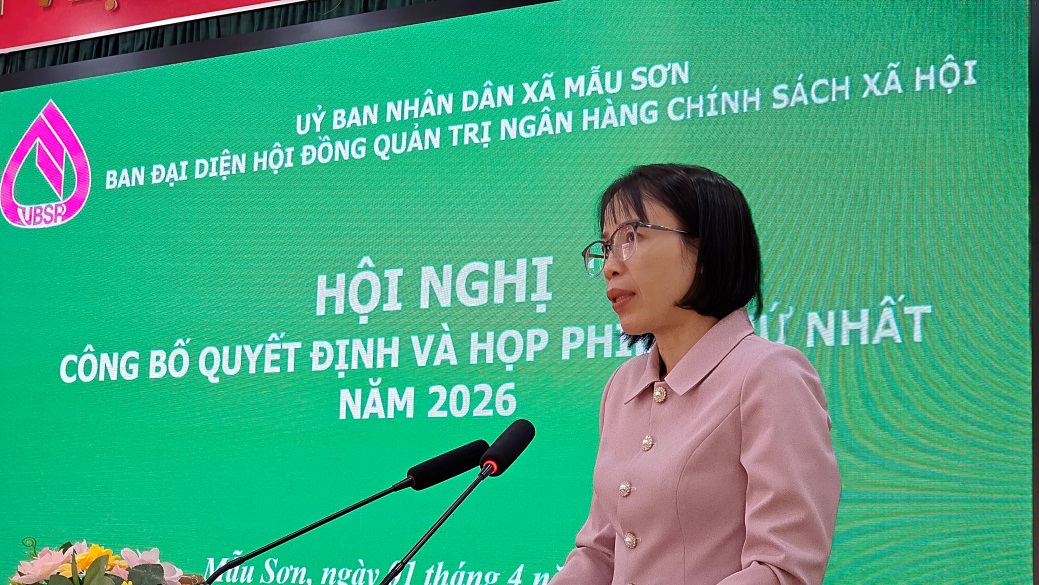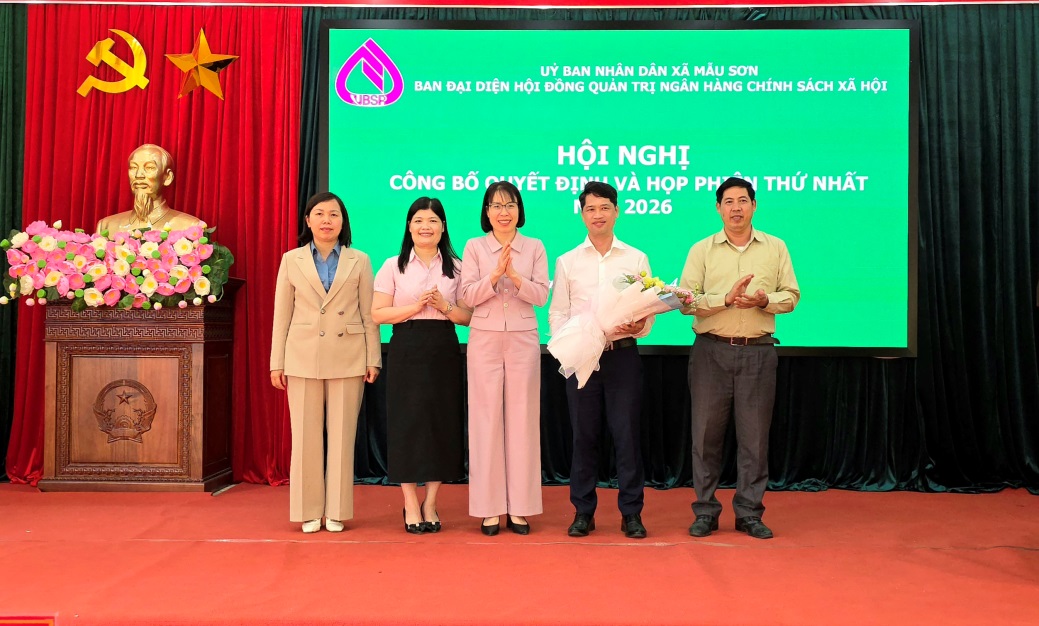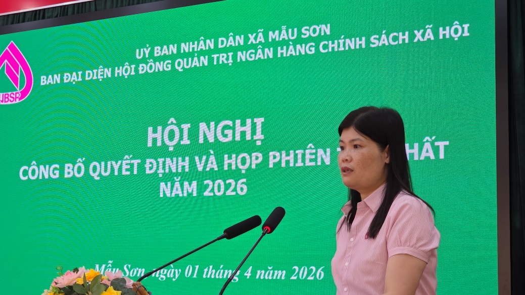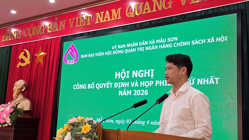 Chiều ngày 01/4/2026, UBND xã Mẫu Sơn phối hợp với Phòng giao dịch Ngân hàng Chính sách xã hội (NHCSXH) Lộc Bình tổ chức Hội nghị công bố Quyết định thành lập Ban đại diện Hội đồng quản trị (HĐQT) NHCSXH xã và tiến hành phiên họp lần thứ nhất nhằm triển khai nhiệm vụ năm 2026.
