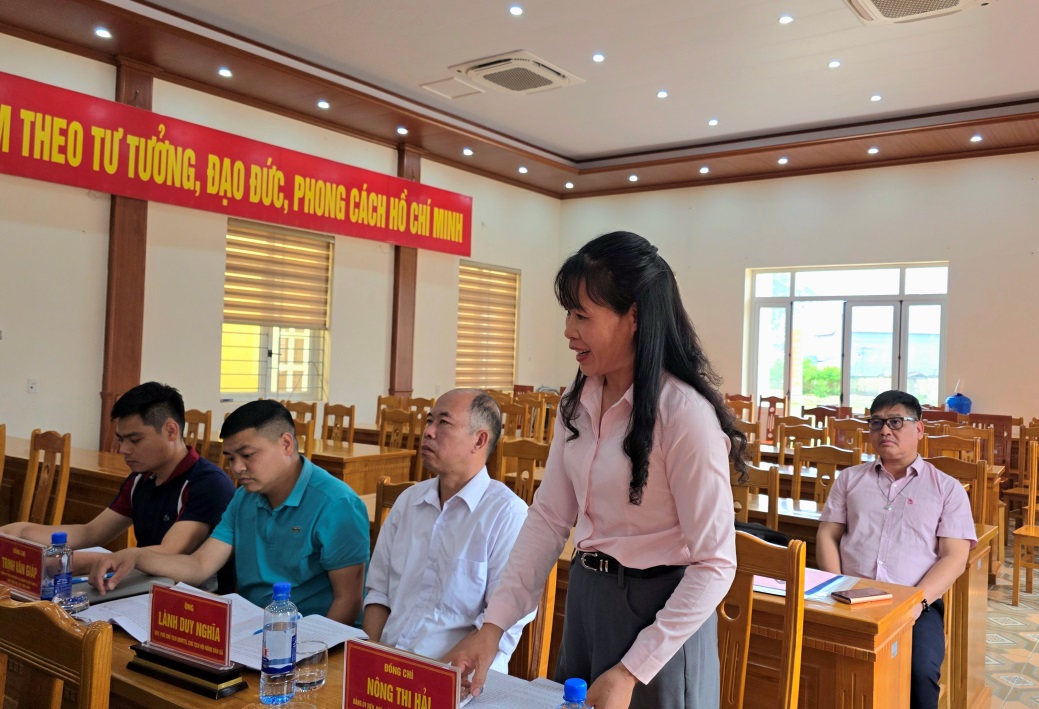 Đồng chí Hoàng Thị Giang, Phó Bí thư Thường trực Đảng ủy xã phát biểu chỉ đạo tại hội nghị