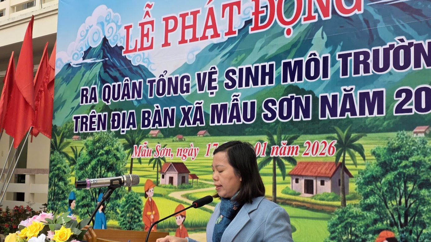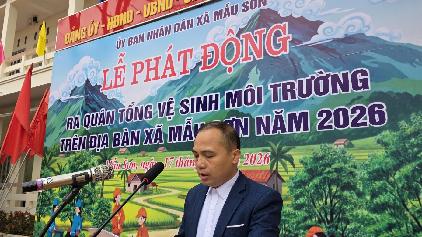 Thực hiện kế hoạch số 06/HK-UBND ngày 13/01/2026 của Uỷ ban nhân dân xã Mẫu Sơn về việc tổ chức ra quân tổng vệ sinh môi trường trên địa bàn xã Mẫu Sơn năm 2026 chào mừng Đại hội đại biểu toàn quốc lần thứ XIV của Đảng. Sáng ngày 17/01/2026, UBND xã Mẫu Sơn tổ chức Lễ phát động ra quân tổng vệ sinh môi trường trên địa bàn xã.