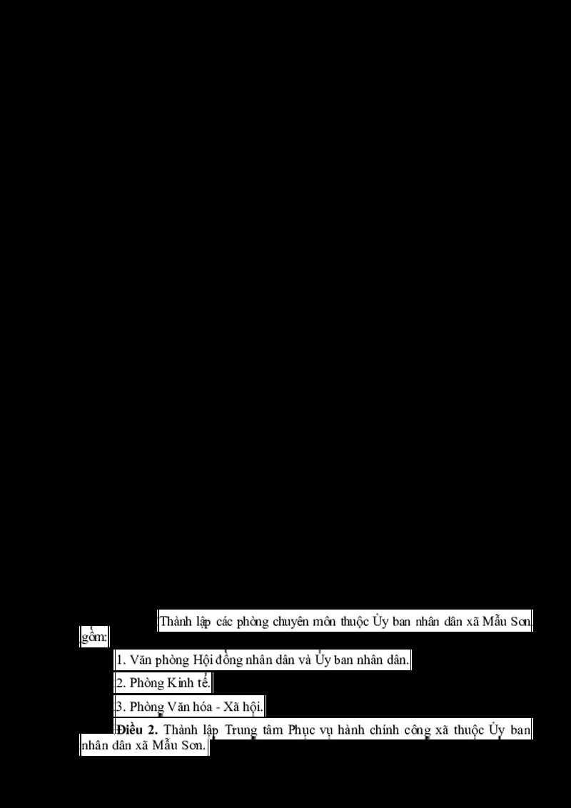 | Tiêu đề văn bản | NGHỊ QUYẾT Thành lập các phòng chuyên môn và Trung tâm Phục vụ hành chính công xã thuộc Ủy ban nhân dân xã Mẫu Sơn | ||