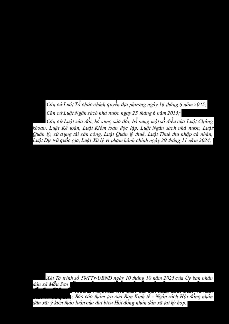 | Tiêu đề văn bản | NGHỊ QUYẾT Về điều chỉnh, bổ sung kế hoạch vốn đầu tư công và kế hoạch vốn thực hiện các chương trình mục tiêu quốc gia giai đoạn 2021-2025 và năm 2025 xã Mẫu Sơn | ||